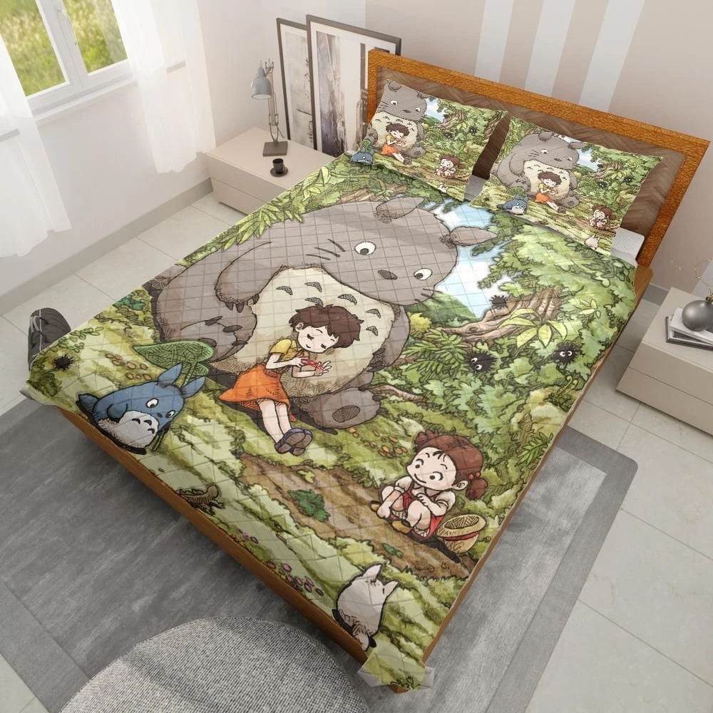 Totoro And The Girls Quilt Bedding Set